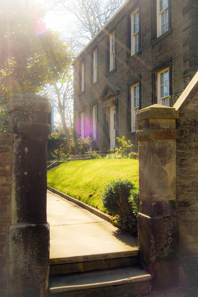 I do like the pink lens flare and sun rays creating a dreamy, magic mood around the entrance to the Parsonage......I can so easily picture the little Bronte children bursting out through the front door and scampering in the garden with laughter....